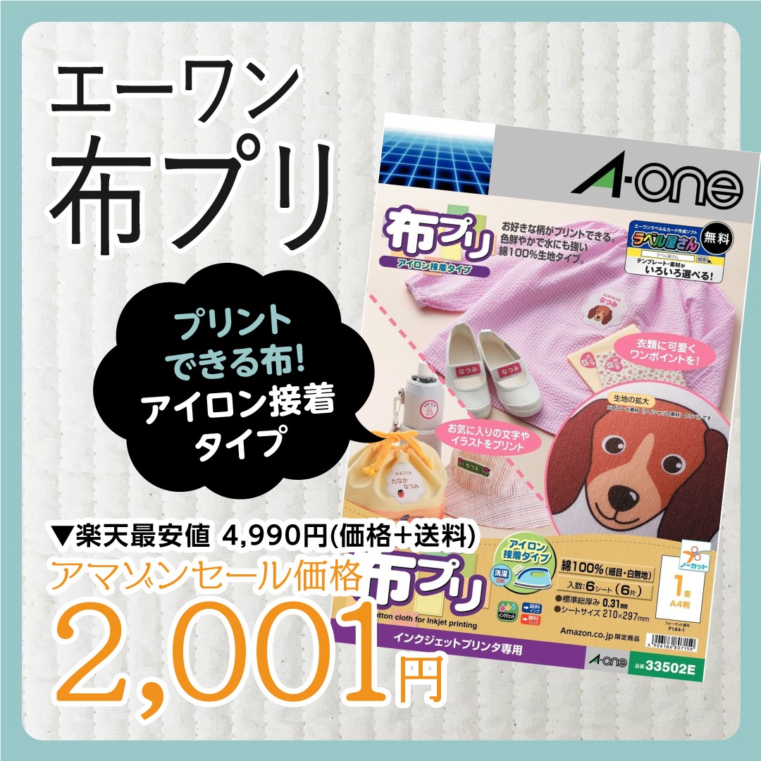 布プリ アイロン接着タイプ A4判サイズ ノーカット 2シート入り